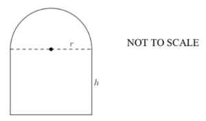 to be replaced. It is in the shape of a rectangle surmounted by a semi-circle as shown. Let the radius of the semi-circle be r metres and the height of the rectangle be h metres.a. Given that the perimeter of the window is to be 16π metres, show that h = 8 – r – ½πr.